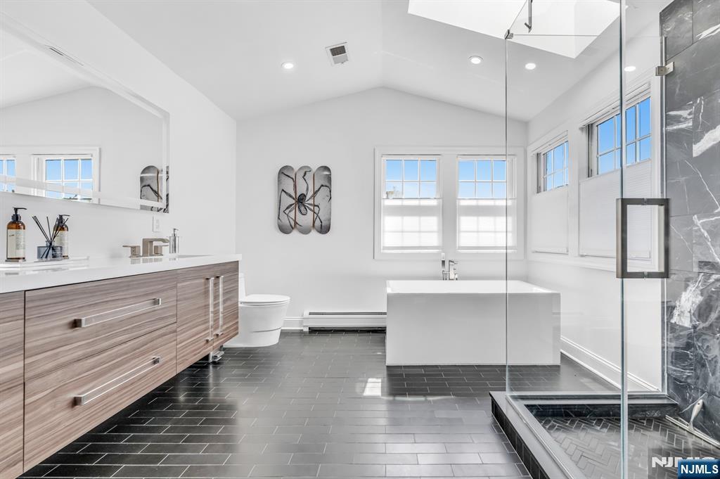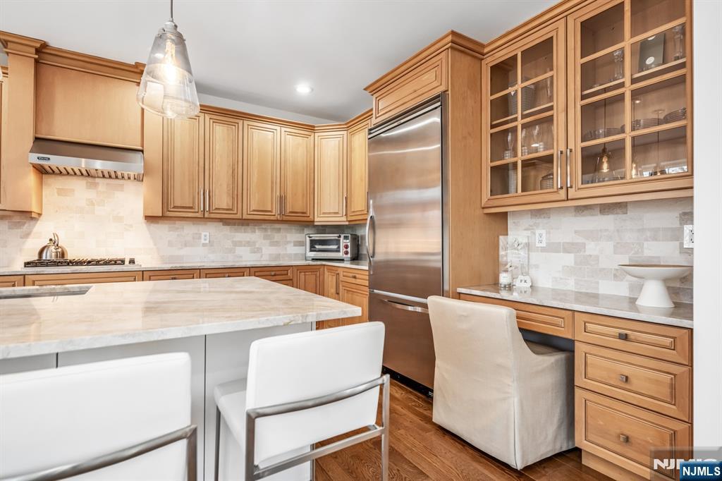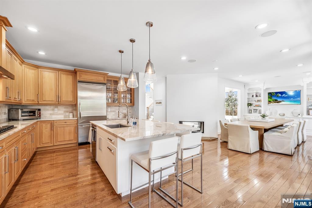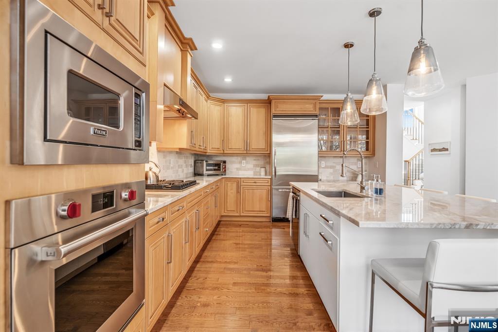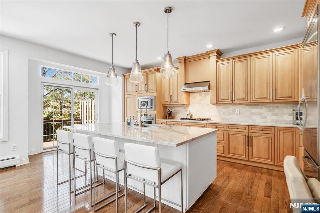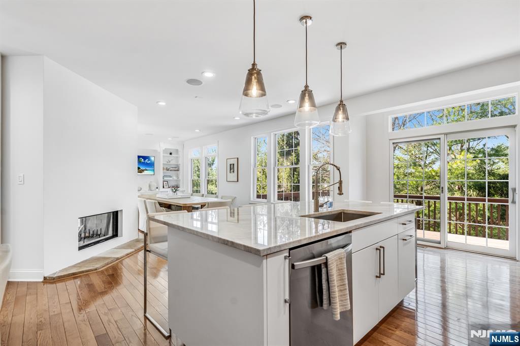 Absolutely immaculate end-unit townhome in desirable Summit Pointe offering 3 bedrooms, 3.5 bathrooms, a 2-car garage, large driveway, and an oversized walkout finished basement, with nearly 4,000 square feet of total living space. A dramatic entry foyer and living room with soaring double-height ceilings and oversized Pella windows create an airy, grand feel throughout the home. The light-filled main living spaces are beautifully appointed with hardwood floors, recessed lighting, built-in speakers, and high-quality custom finishes. The stunning kitchen features custom wood cabinetry, a large center island, beautiful stone countertops, stainless steel Wolf and Viking appliances, and a double-sided fireplace, while the dining area is enhanced by a gorgeous wall of custom built-ins. Sliding doors lead to a large deck, perfect for indoor-outdoor living. Convenient main-level laundry. The expansive primary suite is a true retreat, complete with skylights that pour in natural light, a beautifully designed spa-like bathroom with a large glass shower, soaking tub, and walk-in closet. The secondary bedrooms are all generously sized. The walkout lower level is an entertaineraEUR(tm)s dream, featuring a brand new bar with sink and beverage centers, along with exceptional additional living space. Additional features include central air, central vacuum, and ample storage. A truly move-in ready home with gorgeous renovations throughout. Amazing community with stunning pool, tennis, clubhouse.