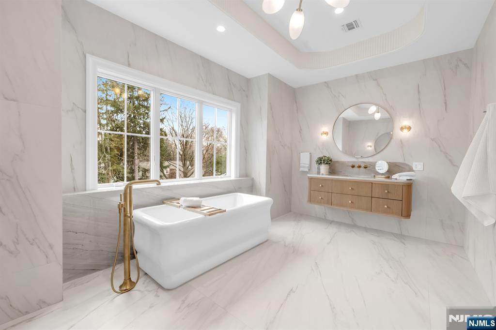 An absolute masterpiece of modern luxury, this brand-new residence has just been completed by renowned developer Tru Habitat. Spanning 10,000+ sq ft of meticulously crafted living space, it offers 7 bedrooms, 6.5 bathrooms, and every high-end feature imaginable. Professionally designed with a curated blend of timeless elegance and modern sophistication, the home showcases exquisite finishes, designer lighting, custom millwork, and a seamless, thoughtfully planned layout. The show-stopping chefaEUR(tm)s kitchen, paired with a separate prep kitchen, is fully outfitted with top-of-the-line Sub-Zero and Wolf appliances. The grand primary suite boasts a fireplace, private sitting room, oversized walk-in closet with two center islands, and a spa-inspired bath with radiant heated floors. Additional highlights include two laundry rooms (on the 1st and 2nd floors), a 3-car garage, and an amenity-rich lower level featuring a theater, gym, guest suite, and expansive recreation room with a wet bar. The private backyard oasis is complete with a custom gunite saltwater pool, hot tub, and covered patio with fireplace, and custom outdoor kitchen. Set on over 1.25 acres and backing up to Saddle River, the property offers exceptional privacy with preserved wooded land that will never be developed. Located in sought-after Ho-Ho-Kus with top-rated schools, a charming downtown, and convenient NYC access, this just-finished home delivers the ultimate blend of luxury and lifestyle.