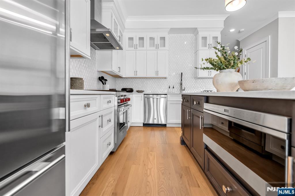 Stunning luxury townhome at Gabriel Estates, a boutique community in the heart of Paramus. Built just a few years ago, this spectacular residence has been fully upgraded with elegant trim and moldings, designer wall coverings, custom cabinetry, and a built-in home office within the primary suite. The home offers 3 bedrooms, 2 full bathrooms, and 2 half bathrooms, featuring soaring 10-ft ceilings on the first floor and 9-ft ceilings upstairs that create an open, airy ambiance. The gourmet chefaEUR(tm)s kitchen boasts Sub-Zero/Wolf appliances, quartz countertops, and sliding glass doors leading to a private, fenced-in backyard. The impressive primary suite includes a massive walk-in closet and a spa-like bath with a Jacuzzi tub, oversized shower, and double vanity. The fully finished lower level expands the living space with an incredible recreation room and a custom wet bar with beverage center, perfect for entertaining. Enjoy serene outdoor living with a private patio and yard, all while being minutes from the Garden State Parkway, Route 17, world-class shopping (Trader JoeaEUR(tm)s, Whole Foods, Garden State Plaza, Shake Shack, Container Store, Crate & Barrel, and more), plus access to ParamusaEUR(tm) top-rated schools.