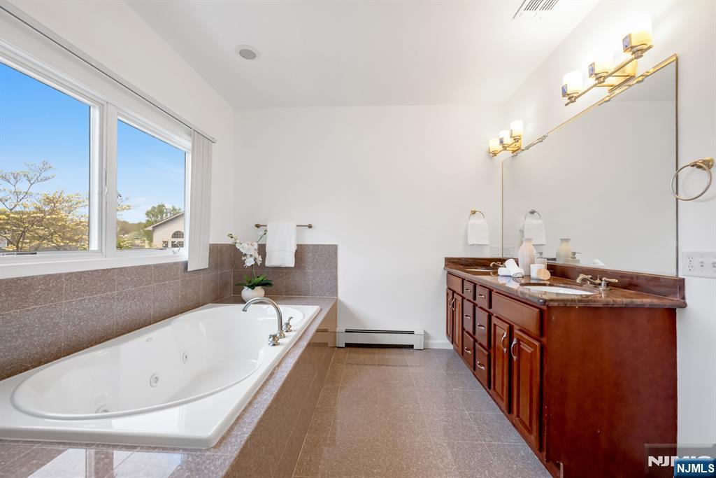 Classic, young, center hall colonial in the heart of Paramus with great curb appeal and a stately presence. This beautiful home offers 5 bedrooms, 3 full bathrooms, a 2-car attached garage, and an excellent floor plan designed for comfortable everyday living. A 2-story entry foyer welcomes you in, with formal living and dining rooms flanking the entrance. The spacious kitchen features granite countertops, stainless steel appliances, a center island, breakfast bar, and opens seamlessly to the inviting family room with fireplace. The main level also includes a first-floor office or bedroom and a full bathroom, offering great flexibility for guests or extended living. Upstairs, the oversized primary suite is a true retreat, complete with a walk-in closet and a luxurious bath with dual vanity, jacuzzi tub, and stall shower. Three additional bedrooms, another full bathroom, and a convenient second-floor laundry room complete the upper level. The huge unfinished basement is clean and offers excellent potential to be finished in the future for additional living space if so desired. Beautifully landscaped property with a large paver patio at the side yard, plus a spacious driveway with room for 4 vehicles. Do not miss this wonderful opportunity in a prime Paramus location! Paramus is home to amazing schools, plenty of great shopping, and wonderful community.