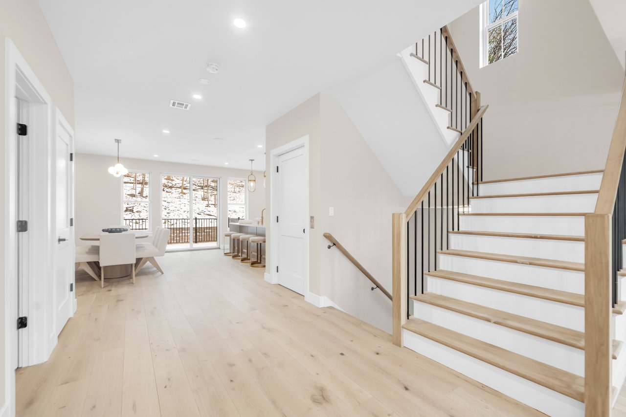 Introducing Lexington on Broadway, a limited collection of just 9 newly constructed townhomes offering refined design, modern comfort, and the added benefit of significant tax savings and incentives! This luxury interior residence features 3 bedrooms, 2 full bathrooms, 2 half baths, plus a rare to find private elevator to all levels. Attached two car garage, delivering both convenience and low maintenance living in a highly sought after town. Finished with carefully curated high end materials, including Thermador appliances, custom cabinetry, quartz countertops, wide plank oak flooring, and designer details throughout. The ground level offers a finished recreation room with a half bath and access to a covered patio. The main living level is designed for seamless everyday living and entertaining, showcasing an open concept layout with a gas fireplace, wet bar, chefaEUR(tm)s kitchen centered around a waterfall quartz island, dining area, powder room, and access to a private deck. The upper level is met by a spacious primary suite with two walk in closets and a spa inspired bath, along with two additional bedrooms, a full bathroom, and a dedicated laundry area. Backing to a wooded setting for rare privacy, the community is ideally located directly across from the commuter train and within a top ranked school district. A 5 year tax abatement offers approx. $75,000 in estimated savings, further enhancing the long term value of this exceptional offering.