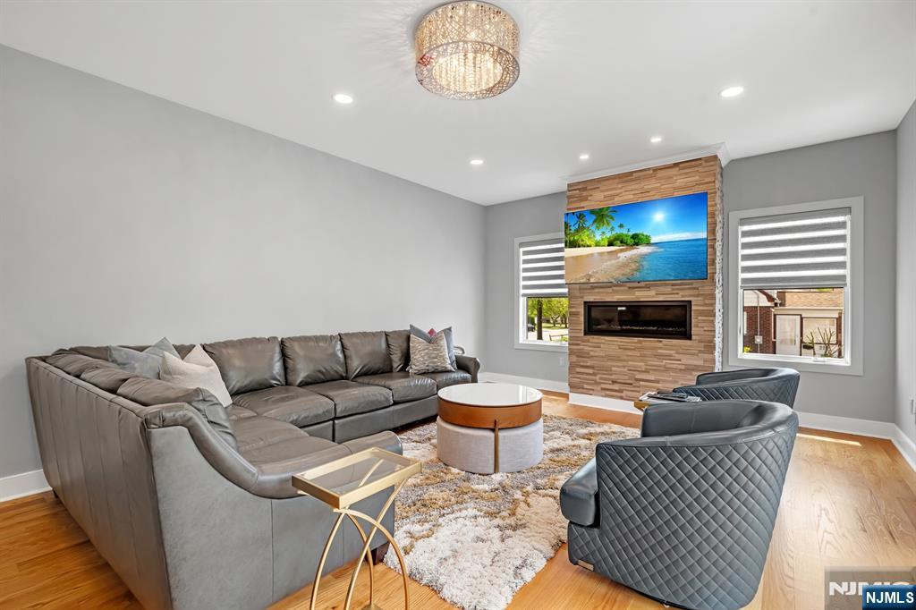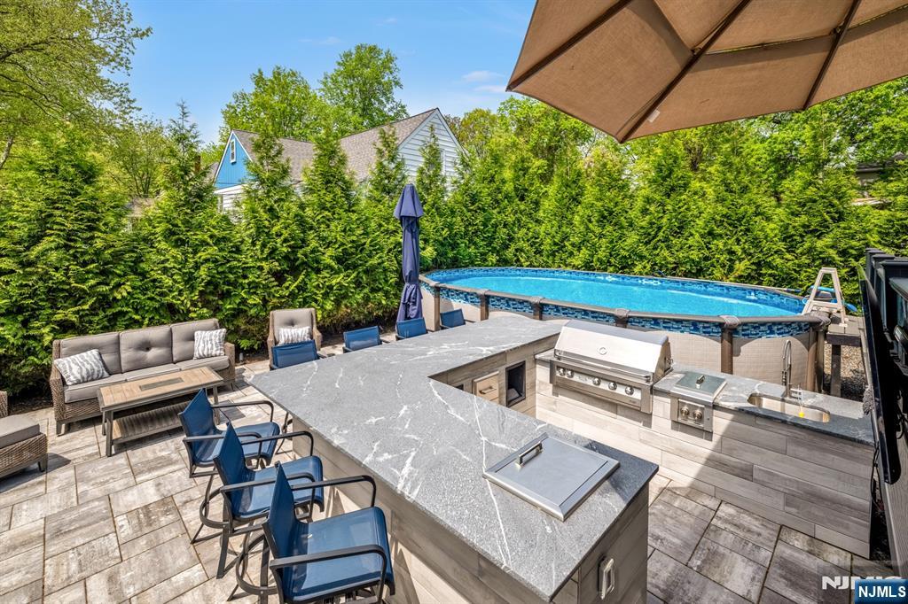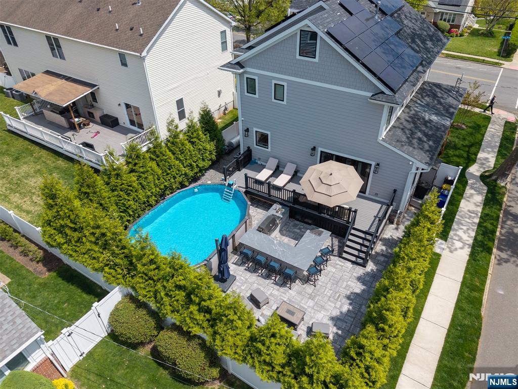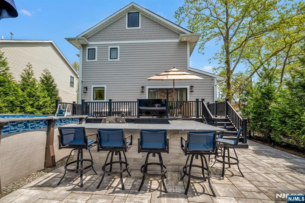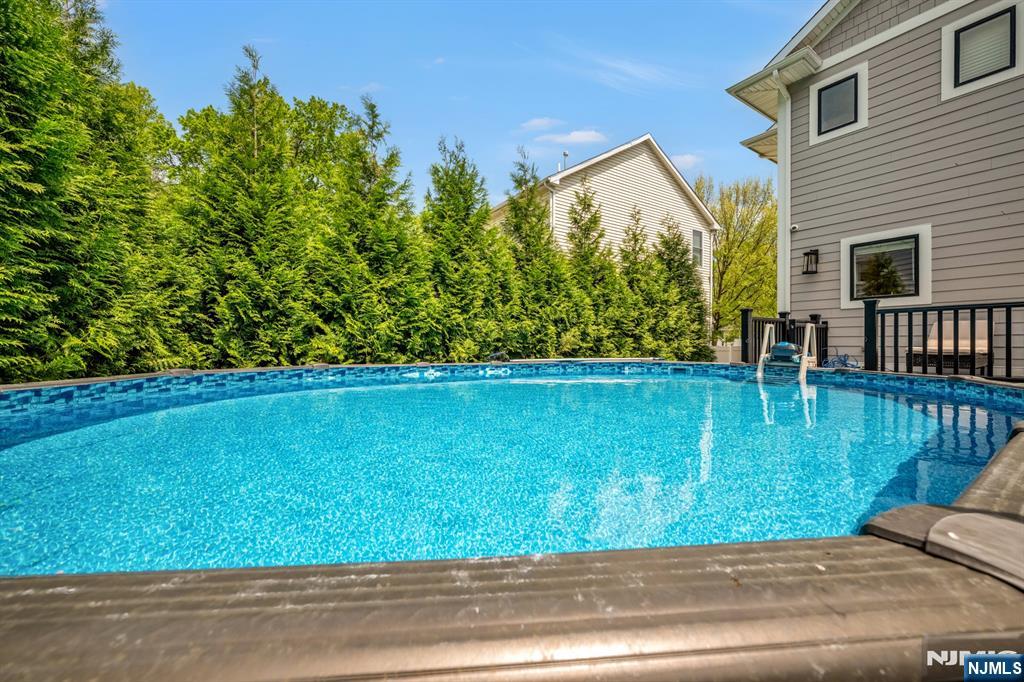 Absolutely stunning newer construction over an existing foundation in Teaneck, offering exceptional curb appeal, a beautifully designed backyard, and high-end finishes throughout. Only a few years young, this thoughtfully designed home features 4 bedrooms, 2 full bathrooms, 2 half bathrooms, an open-concept layout, a 2-car garage, and a fully finished basement. The main level offers seamless flow for both everyday living and entertaining, featuring a formal dining room, powder room, and a gorgeous chefaEUR(tm)s kitchen with premium finishes that opens directly to the spacious family room with a fireplace. Sliding glass doors lead to a large deck overlooking the private, manicured backyard oasis, complete with an expansive Trex deck, fully equipped outdoor kitchen, and above-ground pool. Mature landscaping creates a serene setting with an impressive level of privacy. Upstairs, the luxurious primary suite serves as a true retreat, complete with a walk-in closet and a spa-like ensuite bathroom featuring a soaking tub, oversized glass shower, and dual vanity. Three additional generously sized bedrooms share a beautifully appointed full hallway bath, and top-floor laundry adds convenience. Fully finished basement provides excellent bonus space, ideal for a recreation room, home office, or playroom, and also features a brand new powder room. A truly exceptional home offering style, comfort, and functionality in one of TeaneckaEUR(tm)s most desirable settings. DonaEUR(tm)t miss this opportunity.