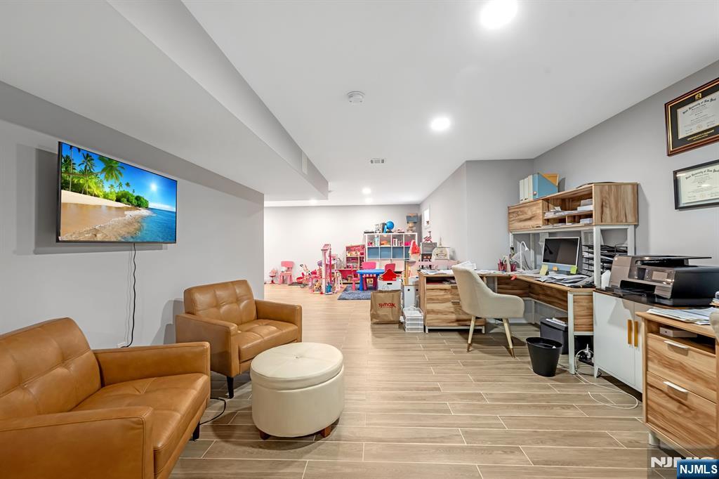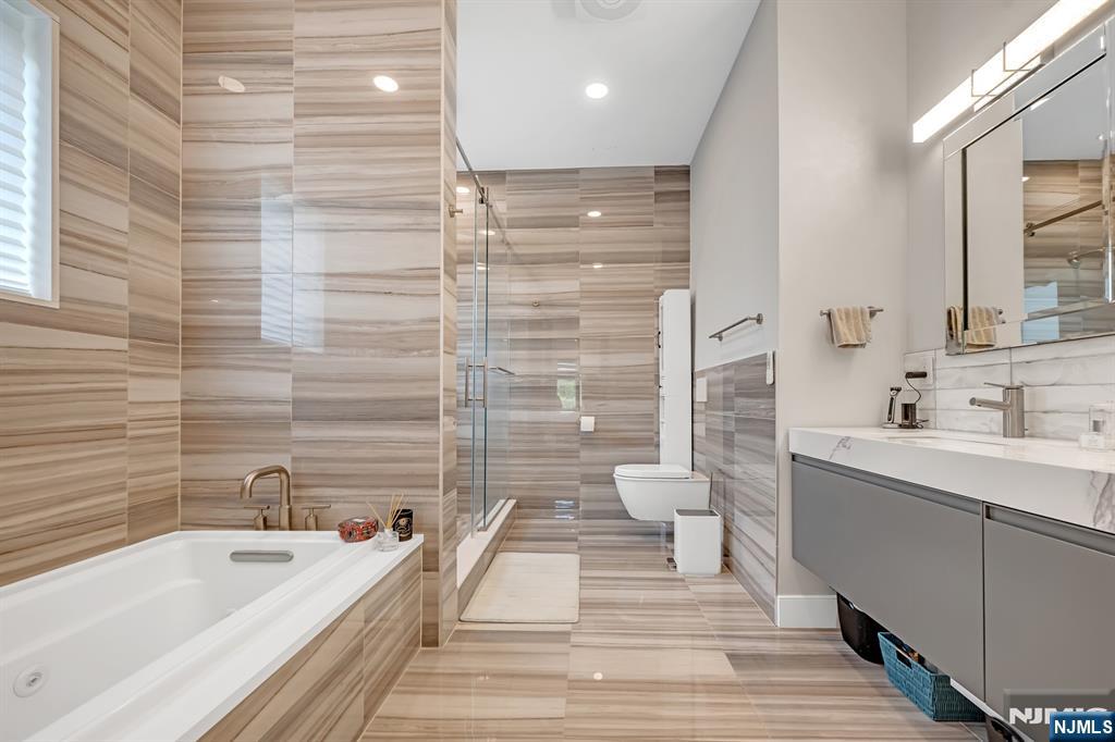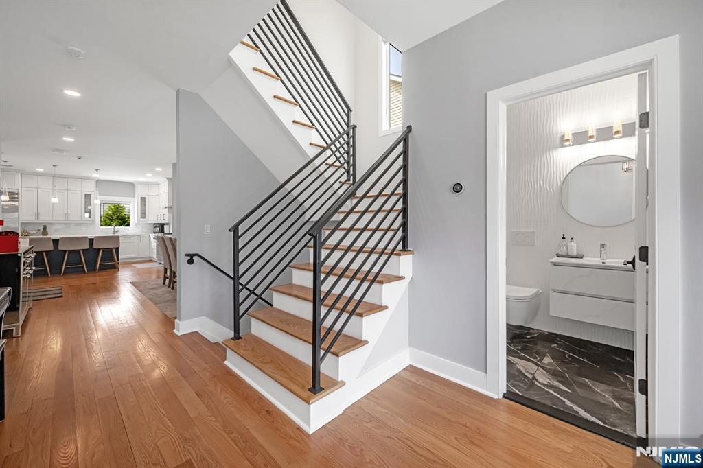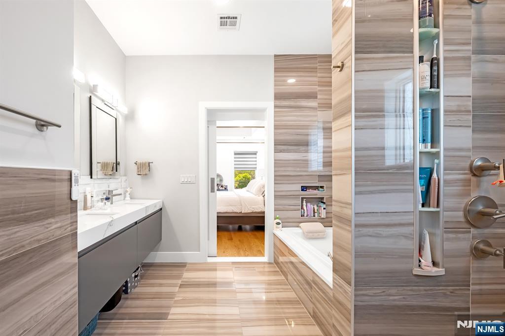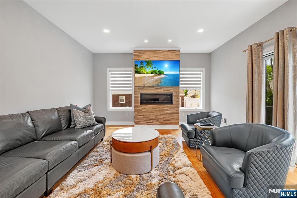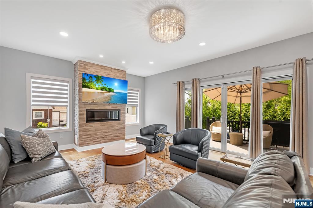 Absolutely stunning newer construction over an existing foundation in Teaneck, offering exceptional curb appeal, a beautifully designed backyard, and high-end finishes throughout. Only a few years young, this thoughtfully designed home features 4 bedrooms, 2 full bathrooms, 2 half bathrooms, an open-concept layout, a 2-car garage, and a fully finished basement. The main level offers seamless flow for both everyday living and entertaining, featuring a formal dining room, powder room, and a gorgeous chefaEUR(tm)s kitchen with premium finishes that opens directly to the spacious family room with a fireplace. Sliding glass doors lead to a large deck overlooking the private, manicured backyard oasis, complete with an expansive Trex deck, fully equipped outdoor kitchen, and above-ground pool. Mature landscaping creates a serene setting with an impressive level of privacy. Upstairs, the luxurious primary suite serves as a true retreat, complete with a walk-in closet and a spa-like ensuite bathroom featuring a soaking tub, oversized glass shower, and dual vanity. Three additional generously sized bedrooms share a beautifully appointed full hallway bath, and top-floor laundry adds convenience. Fully finished basement provides excellent bonus space, ideal for a recreation room, home office, or playroom, and also features a brand new powder room. A truly exceptional home offering style, comfort, and functionality in one of TeaneckaEUR(tm)s most desirable settings. DonaEUR(tm)t miss this opportunity.