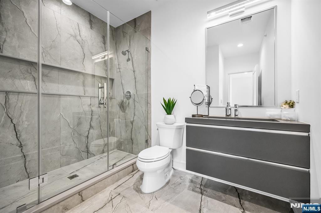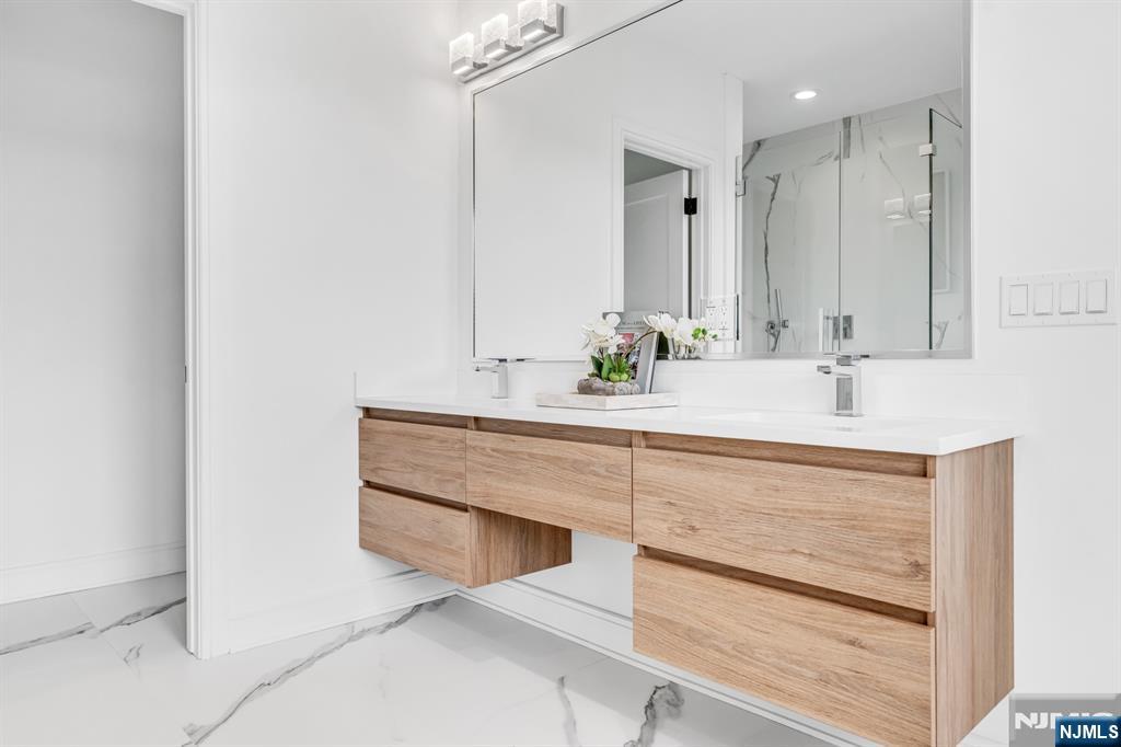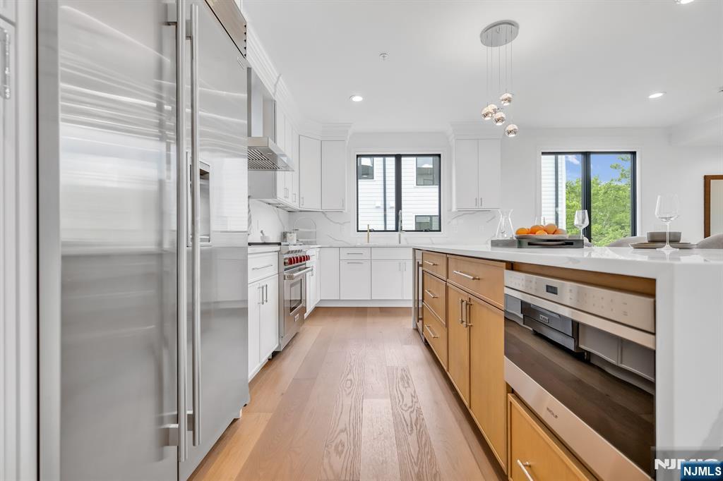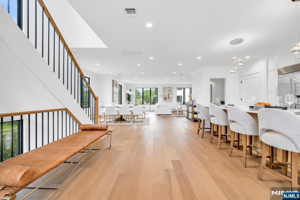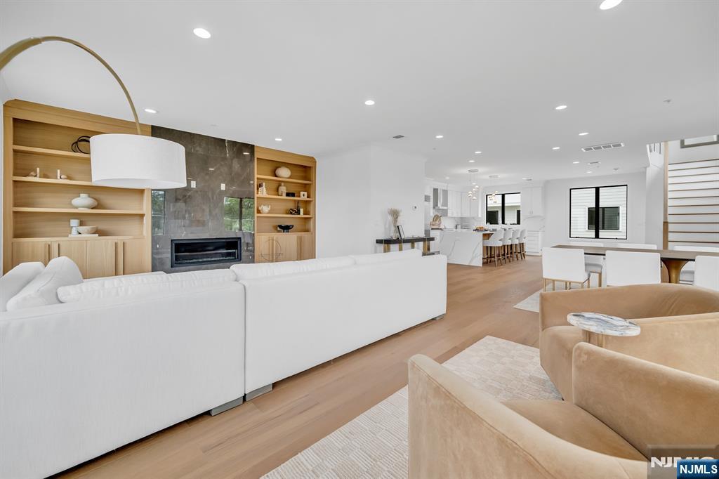 Stunning end-unit townhome at Skye Drive Estates, a highly coveted community of brand new construction built in 2024. Immaculately maintained and beautifully designed, this 3 bedroom, 2 full bathroom, 2 half bath spacious residence was built by Rock Solid Builders and offers exceptional quality throughout. The ground level features a 2-car garage, a comfortable family room, a powder room, and access to a walkout paver patio. The main level offers a gorgeous designer kitchen with a massive center island, pantry, Sub-Zero and Wolf appliances, a dining area, powder room, and a great room with a gas fireplace, custom built-ins, and designer lighting. The top level features a dreamy primary suite with a walk-in closet and spa-like bath with an oversized shower and double vanity, 2 bedrooms & a hallway full bathroom. Do not miss this beautiful townhome in the heart of Paramus, ideally located on the desirable EAST side of Paramus. Walking distance to Van Saun County Park, conveniently located to amazing shopping & restaurants. Wonderful community. LOW PARAMUS TAXES and LOW HOA! (the 3rd bedroom is a DEN as recognized by town with its own closet and door)