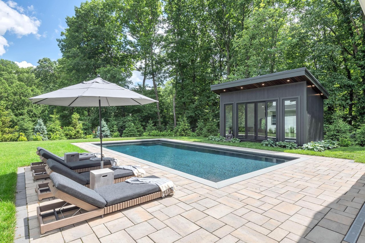 Entertain in style with a 1,400-bottle climate-controlled wine cellar, a resort-like saltwater heated pool, and a pool house complete with a full kitchen. For wellness and relaxation, enjoy the outdoor studio featuring a 5-person infrared sauna.
