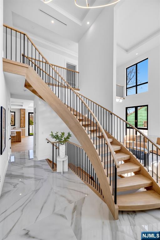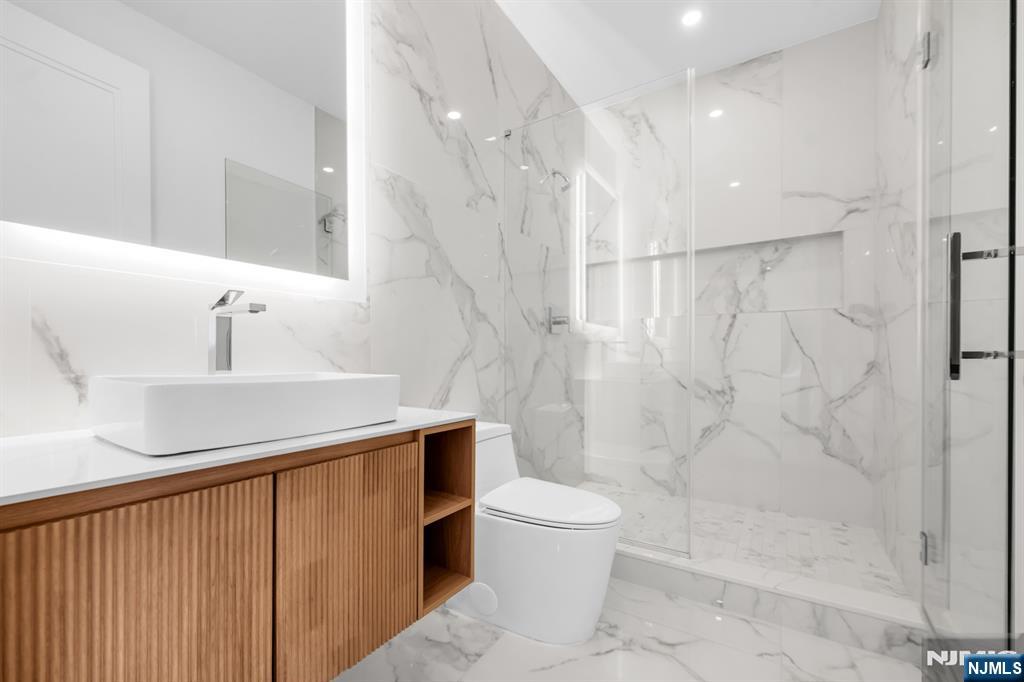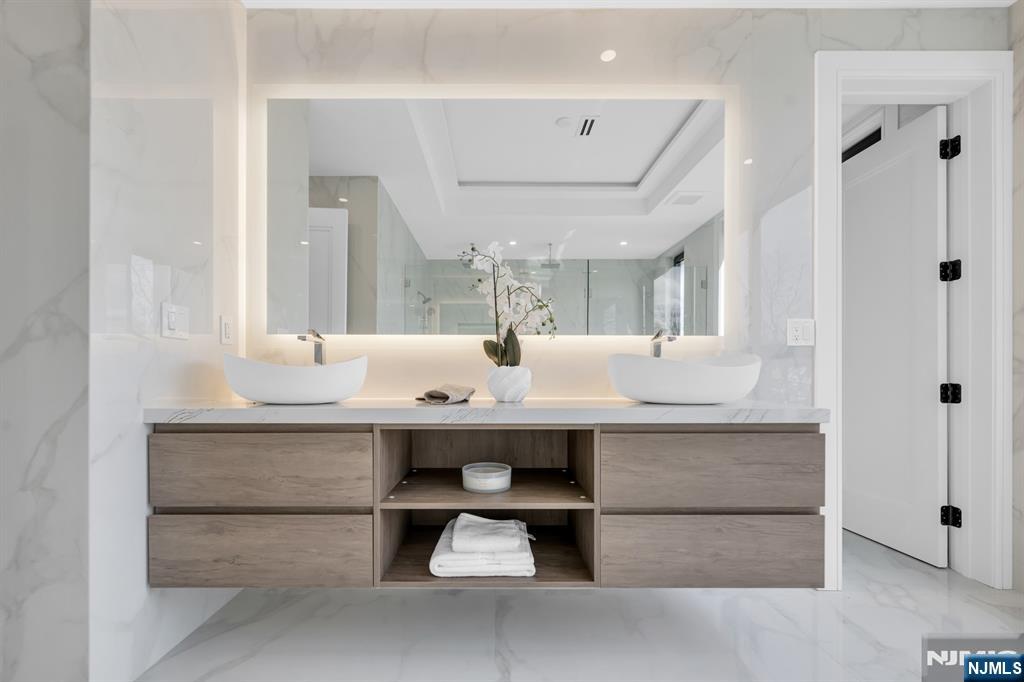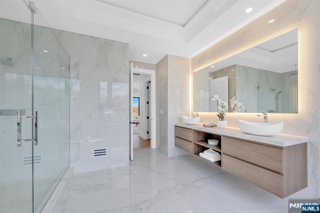Absolutely stunning brand new construction masterpiece by one of ParamusaEUR(tm) premier builders, showcasing exquisite finishes and exceptional craftsmanship throughout. This classic center hall colonial offers 6 bedrooms and 6.5 bathrooms, highlighted by a dramatic double-height entrance foyer with a showstopping curved floating staircase that creates an unforgettable first impression. Formal living and dining rooms flank the foyer, while the stunning European-style kitchen with a huge center island opens seamlessly to the great room with fireplace, creating an ideal layout for everyday living and entertaining. Expansive windows throughout flood the home with natural light. A first-floor bedroom with full bath offers the perfect setup for guests or a home office. Upstairs, all bedrooms are en-suites, including a dreamy primary suite with two walk-in closets and a spa-like bath with soaking tub and oversized shower. Three additional junior suites and a convenient second-floor laundry complete the upper level. The fully finished basement is absolutely gorgeous, featuring a huge rec room, bar, movie theater, sixth bedroom, and full bath. Set on a large, flat, fully fenced backyard in the heart of ParamusaEUR(tm) desirable east side, close to shopping, schools, and everything the community has to offer.