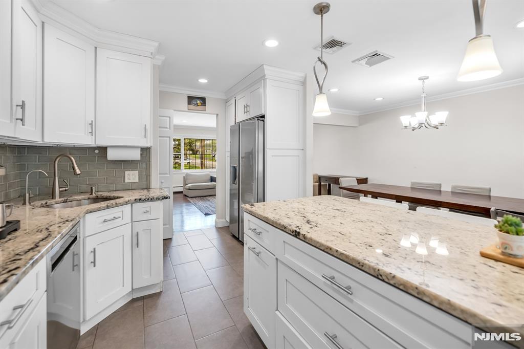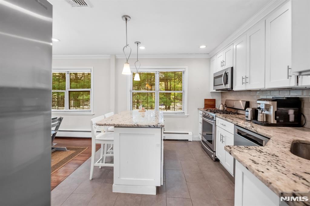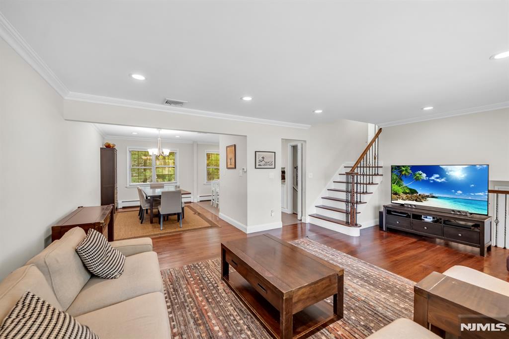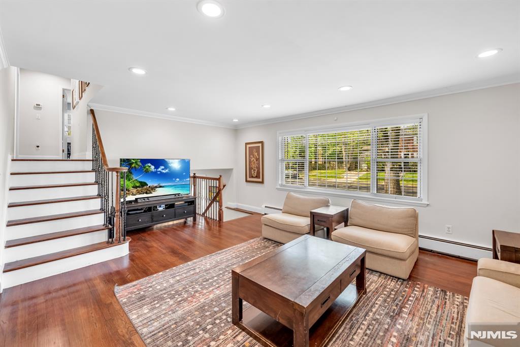 Beautifully renovated and meticulously maintained split-level home in idyllic Cresskill, offering 3 bedrooms and 2.5 bathrooms. This inviting home features a classic split-level layout designed for both comfortable everyday living and easy entertaining. The entry foyer leads to the ground level, where you will find a spacious family room with glass double doors, opening directly to the beautiful backyard, along with a renovated powder room, laundry room, and access to the attached 1-car garage. A few steps up, the main living level offers an open and airy flow between the kitchen, living room, and dining room. Gleaming hardwood floors enhance the living and dining areas, while the beautifully renovated kitchen is equipped with a center island, granite countertops, stainless steel appliances, and an open-concept design perfect for entertaining. The bedroom level features 3 spacious bedrooms and 2 full bathrooms, including a primary suite with its own en-suite bathroom. Additional highlights include central air, a 4-car driveway, and a lovely backyard with a paver patio. Do not miss this fantastic opportunity to own a move-in-ready home in one of CresskillaEUR(tm)s most desirable locations.
