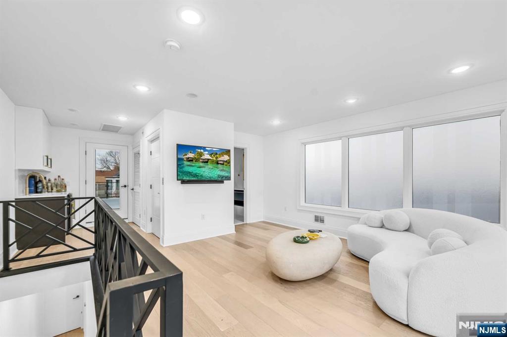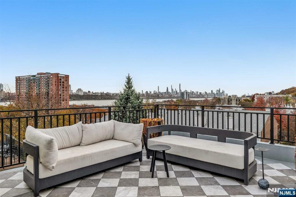 Absolutely stunning Edgewater duplex offering a rare blend of luxury, convenience, and sweeping panoramic NYC skyline views. Ideally located just a short walk to the ferry, this exceptional home features a private elevator servicing all levels, an uncommon and highly sought-after amenity. The residence offers 4 bedrooms, 2 full bathrooms, 3 half baths, and a 2-car garage, thoughtfully designed for both elevated living and everyday comfort. The chefaEUR(tm)s kitchen showcases a large center island, quartz countertops, and professional-grade stainless steel appliances, with sliding glass doors leading to a patio and steps down to a grassy outdoor area. The sun-filled living room is anchored by a cozy fireplace with custom built-ins and a dramatic wall of windows, while a generous dining area sits seamlessly within the open-concept layout. The primary suite is a true retreat, featuring a spa-inspired en-suite with soaking tub, double vanity, and glass-enclosed shower. The top level is an entertaineraEUR(tm)s dream, offering a recreation room or additional bedroom, wet bar, and two expansive terraces capturing breathtaking skyline views. With a total of three outdoor spaces, an unbeatable location, and exceptional luxury throughout, this is a truly special offering not to be missed.