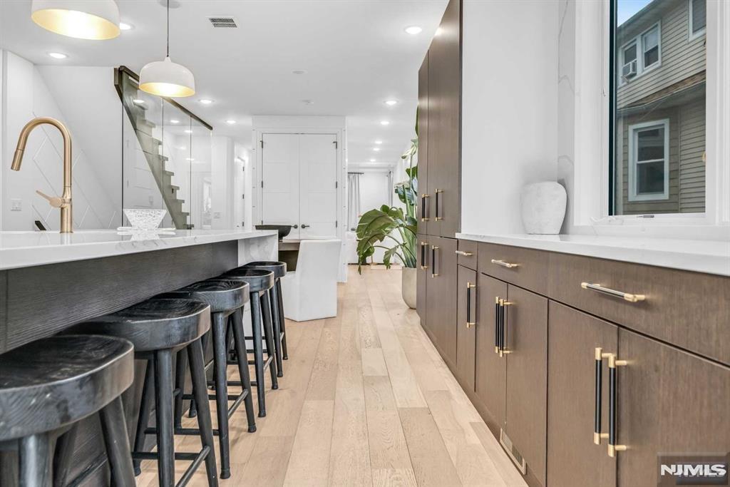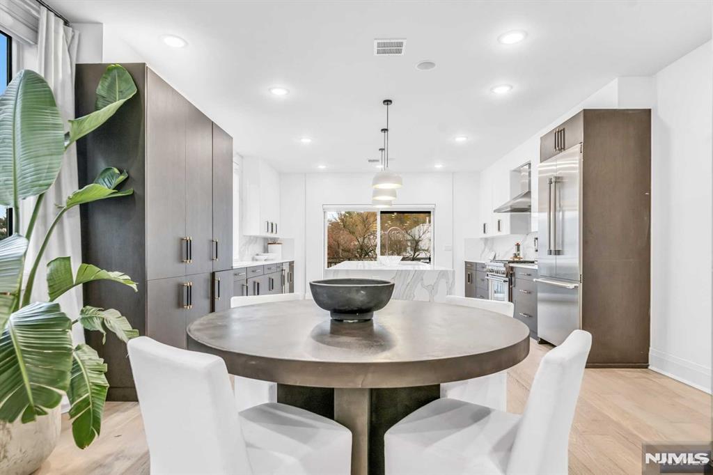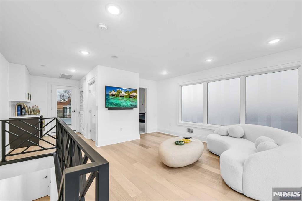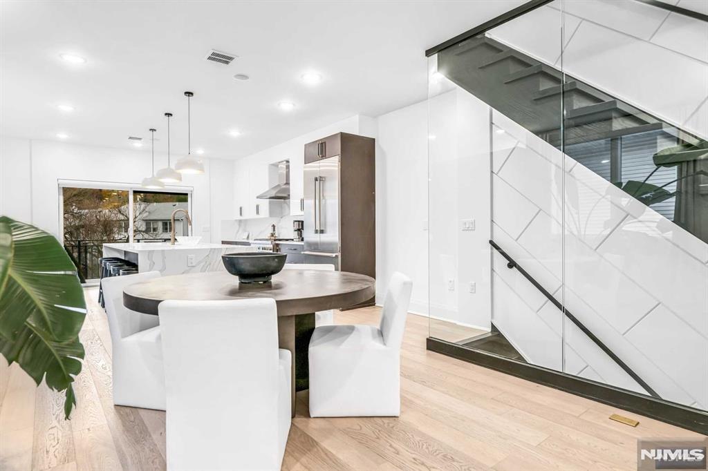 Absolutely stunning Edgewater duplex offering a rare blend of luxury, convenience, and sweeping panoramic NYC skyline views. Ideally located just a short walk to the ferry, this exceptional home features a private elevator servicing all levels, an uncommon and highly sought-after amenity. The residence offers 4 bedrooms, 2 full bathrooms, 3 half baths, and a 2-car garage, thoughtfully designed for both elevated living and everyday comfort. The chefaEUR(tm)s kitchen showcases a large center island, quartz countertops, and professional-grade stainless steel appliances, with sliding glass doors leading to a patio and steps down to a grassy outdoor area. The sun-filled living room is anchored by a cozy fireplace with custom built-ins and a dramatic wall of windows, while a generous dining area sits seamlessly within the open-concept layout. The primary suite is a true retreat, featuring a spa-inspired en-suite with soaking tub, double vanity, and glass-enclosed shower. The top level is an entertaineraEUR(tm)s dream, offering a recreation room or additional bedroom, wet bar, and two expansive terraces capturing breathtaking skyline views. With a total of three outdoor spaces, an unbeatable location, and exceptional luxury throughout, this is a truly special offering not to be missed.