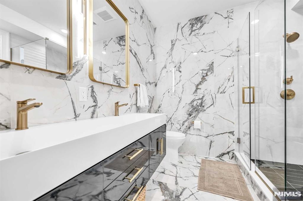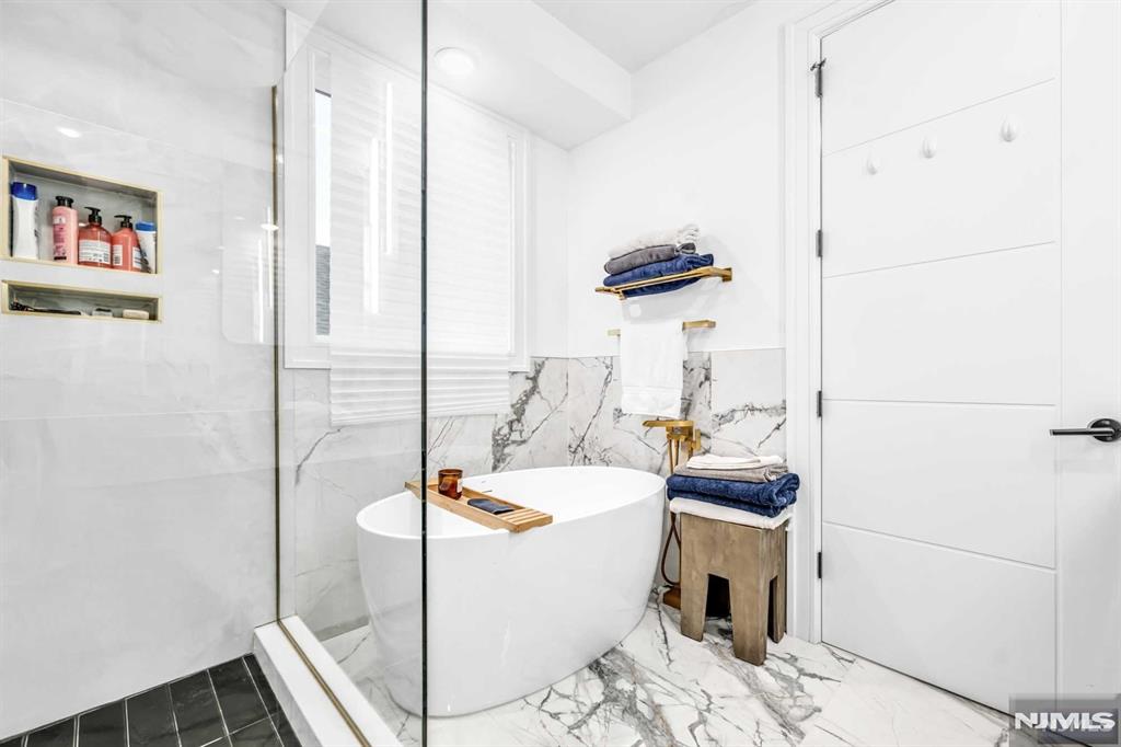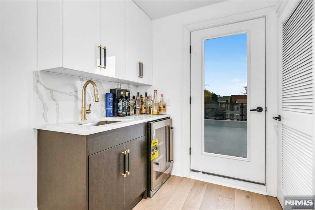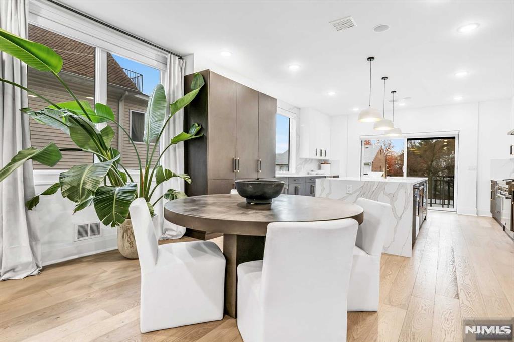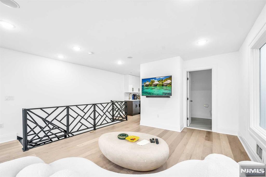 Absolutely stunning Edgewater duplex offering a rare blend of luxury, convenience, and sweeping panoramic NYC skyline views. Ideally located just a short walk to the ferry, this exceptional home features a private elevator servicing all levels, an uncommon and highly sought-after amenity. The residence offers 4 bedrooms, 2 full bathrooms, 3 half baths, and a 2-car garage, thoughtfully designed for both elevated living and everyday comfort. The chefaEUR(tm)s kitchen showcases a large center island, quartz countertops, and professional-grade stainless steel appliances, with sliding glass doors leading to a patio and steps down to a grassy outdoor area. The sun-filled living room is anchored by a cozy fireplace with custom built-ins and a dramatic wall of windows, while a generous dining area sits seamlessly within the open-concept layout. The primary suite is a true retreat, featuring a spa-inspired en-suite with soaking tub, double vanity, and glass-enclosed shower. The top level is an entertaineraEUR(tm)s dream, offering a recreation room or additional bedroom, wet bar, and two expansive terraces capturing breathtaking skyline views. With a total of three outdoor spaces, an unbeatable location, and exceptional luxury throughout, this is a truly special offering not to be missed.