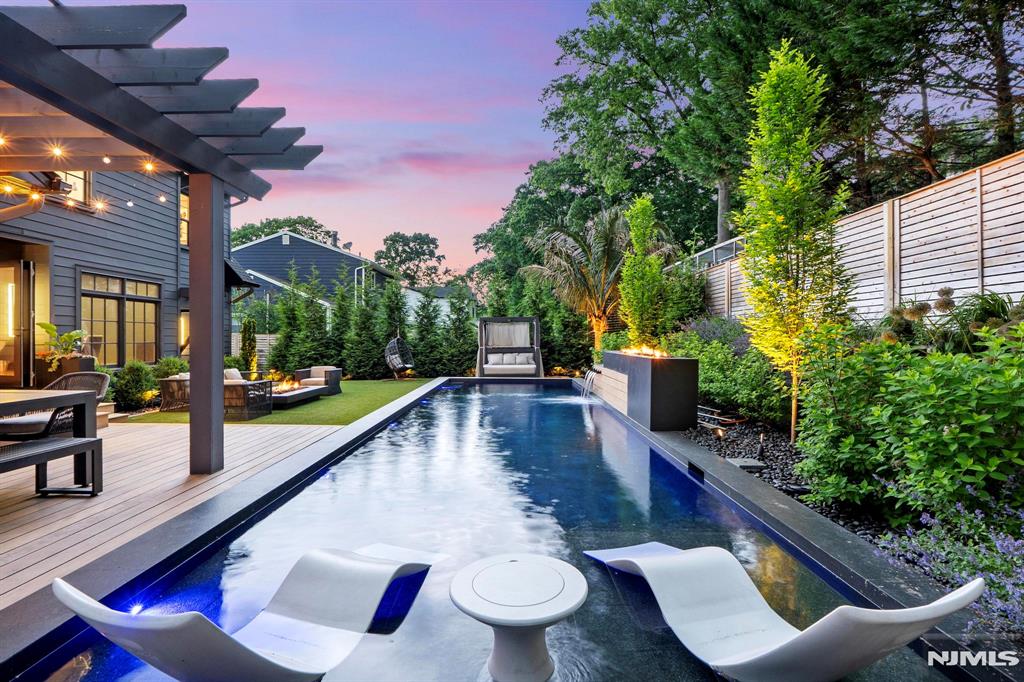 Beautifully finished and completely custom 4 bedroom 2.5 bathroom dream home designed and built ECS HOMES and Plan Architecture! True backyard oasis with a stunning outdoor entertaining space with a gunite pool, amazing deck areas, outdoor speakers, gas fire-pit and built-in bbq area. Ideal layout with an Open-Concept Designer Kitchen that features quartz countertops, high-end custom cabinetry, SS appliances, and brass accents. Family Room off of the Kitchen with Gas fireplace, making this an ideal home for entertaining. 1st Floor also features Formal Living Room, Office with floor-to-ceiling windows, 1/2 bathroom & mudroom off of the garage. Upstairs, the Primary Suite boasts a custom WET-ROOM En-Suite Primary Bathroom, with soaking tub IN shower! 3 additional spacious beds, another full bath, plus laundry. Finished basement with Rec Room. HardiePlank Siding, Andersen Windows, Glass Garage door with epoxy floors and EV charging. Sound-Deafening Insulation. Quiet, tree-lined street.
