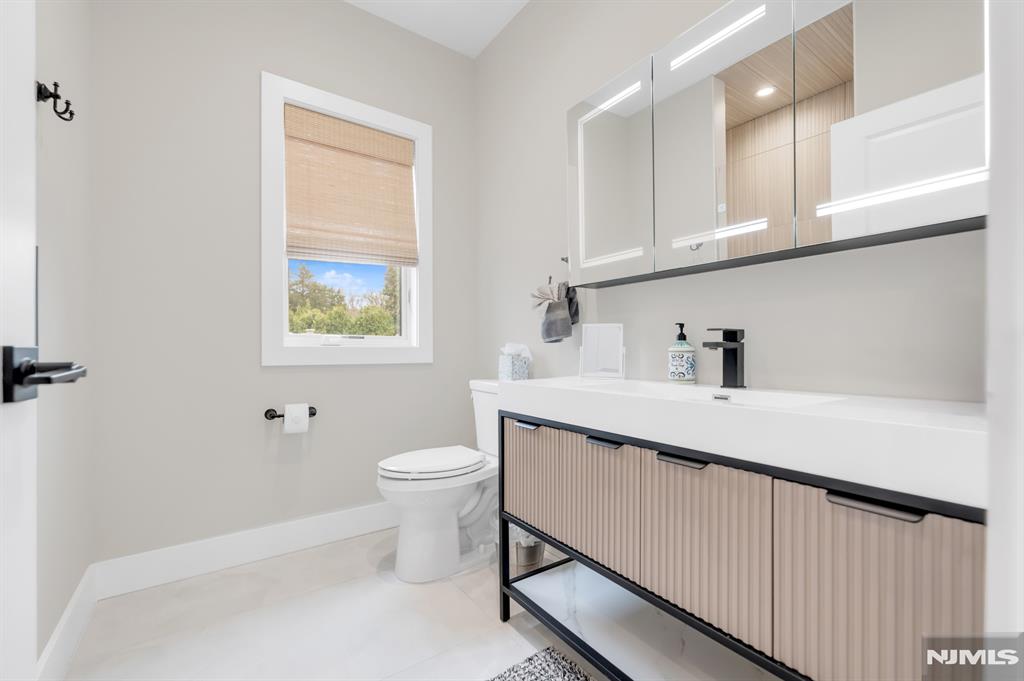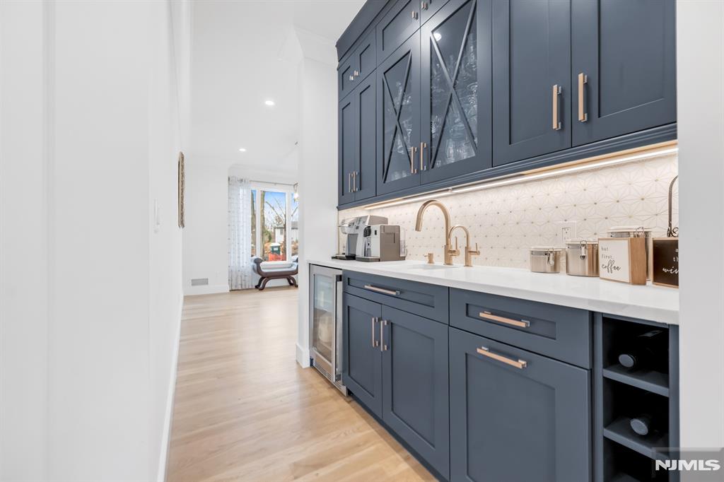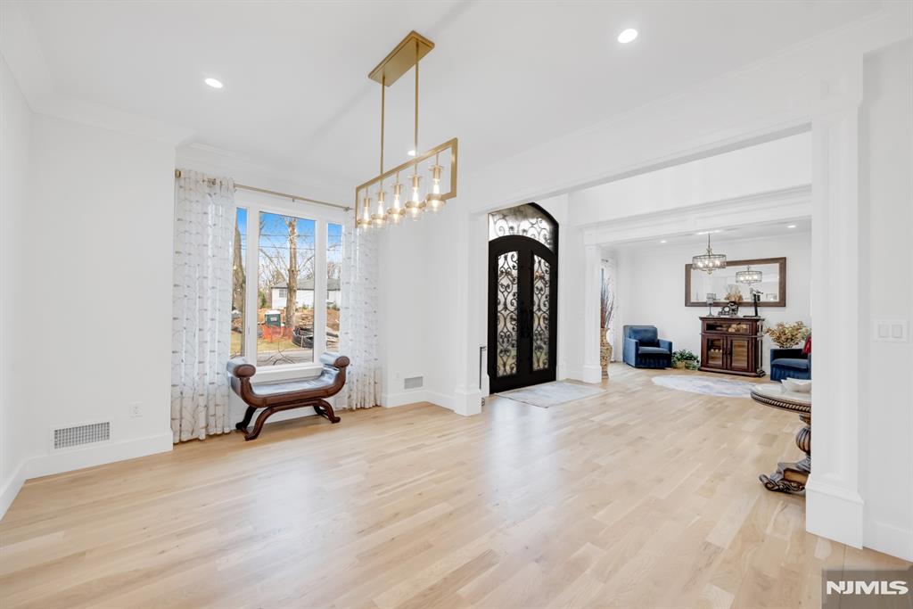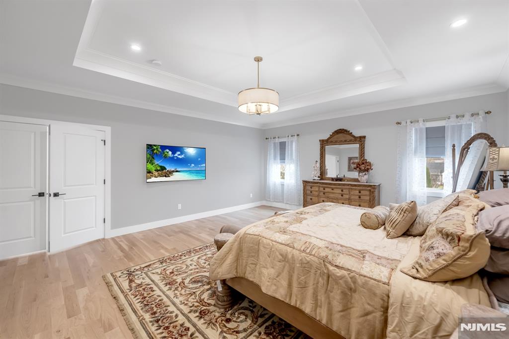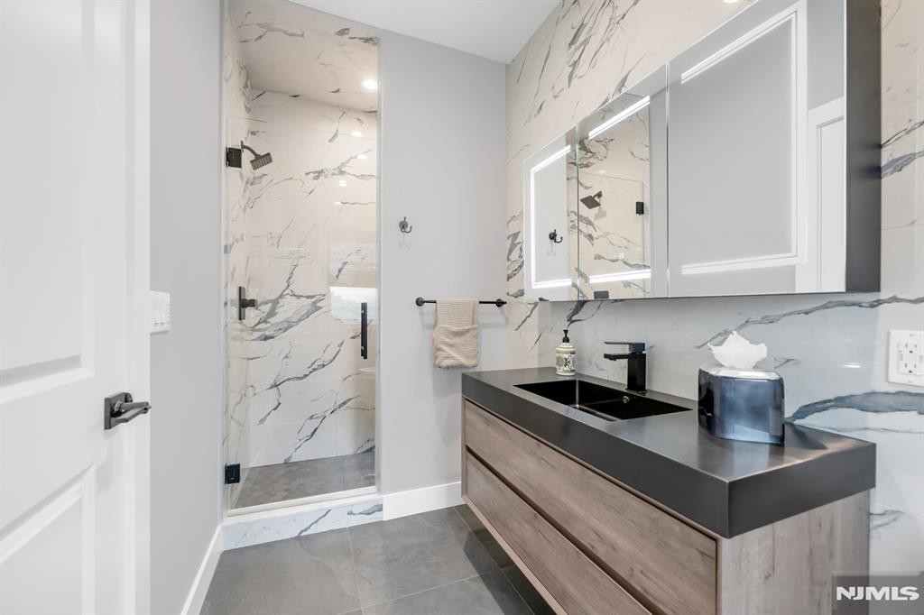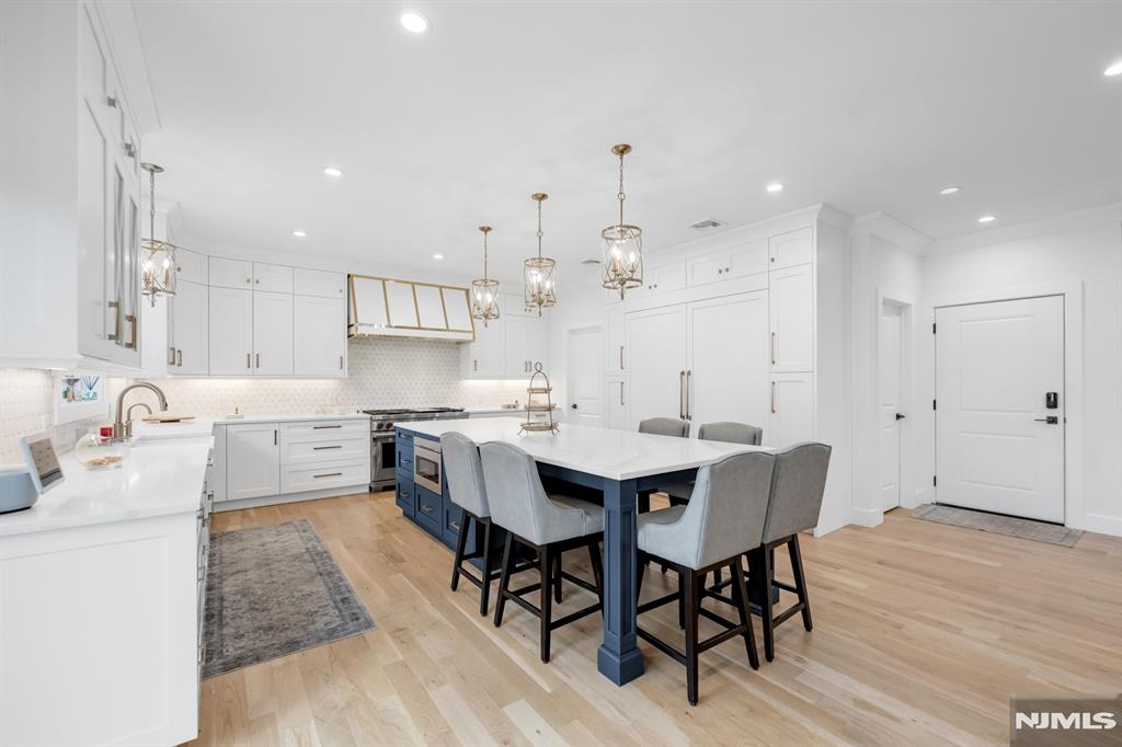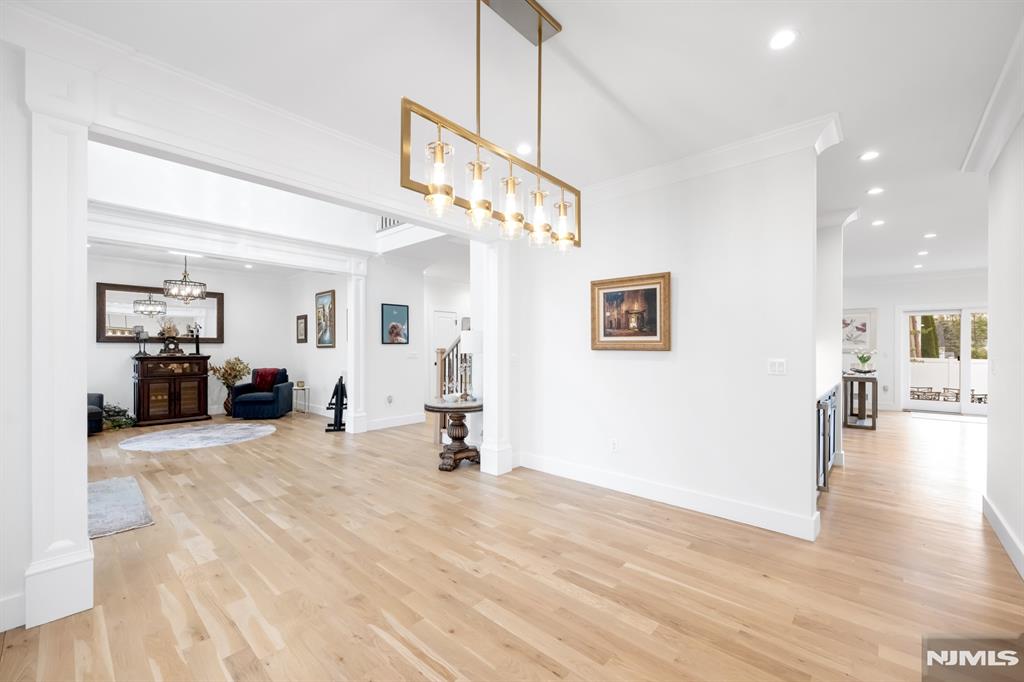 Stunning, brand new construction home built in 2022 in ultra-desirable Paramus! This exceptional modern home offers 6 bedrooms and 5 full bathrooms with a thoughtfully designed layout and luxury finishes. A dramatic two-story foyer welcomes you, flanked by formal LR and DR. Spectacular chefaEUR(tm)s kitchen features St. Martin cabinetry, a massive center island, professional grade appliances including a 48aEUR Wolf dual fuel range, Sub-Zero refrigerator and freezer, Cove dishwasher & butleraEUR(tm)s pantry. The kitchen flows seamlessly into the impressive two-story great room, creating the perfect open-concept space for everyday living and entertaining. Main level also offers a 1st floor bedroom and full bathroom, plus custom mudroom and pantry. Beautiful molding and trim throughout. Upstairs features 4 spacious en-suite bedrooms, including the lux primary suite with 2 WICs and a spa-like bath with radiant heated floors. The finished basement provides incredible space with a large rec room, bar w. micro & fridge, plus bedroom and full bath Step outside to the expansive, fully fenced backyard with paver patio & outdoor kitchen with grill, sink, and fridge. Whole house generator, central vac, smart home features, security cameras, sprinkler system, 3-zone heating and cooling, and so much more. Incredible opportunity to own a beautifully finished and upgraded new construction home only a few years young, close to top rated schools, shopping, dining, and major highways.