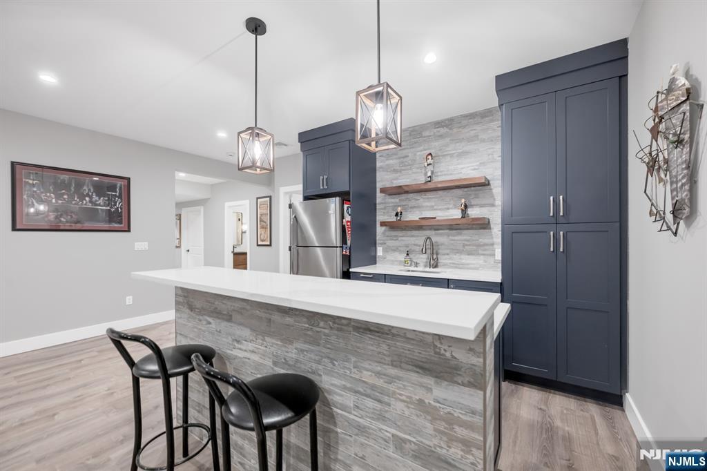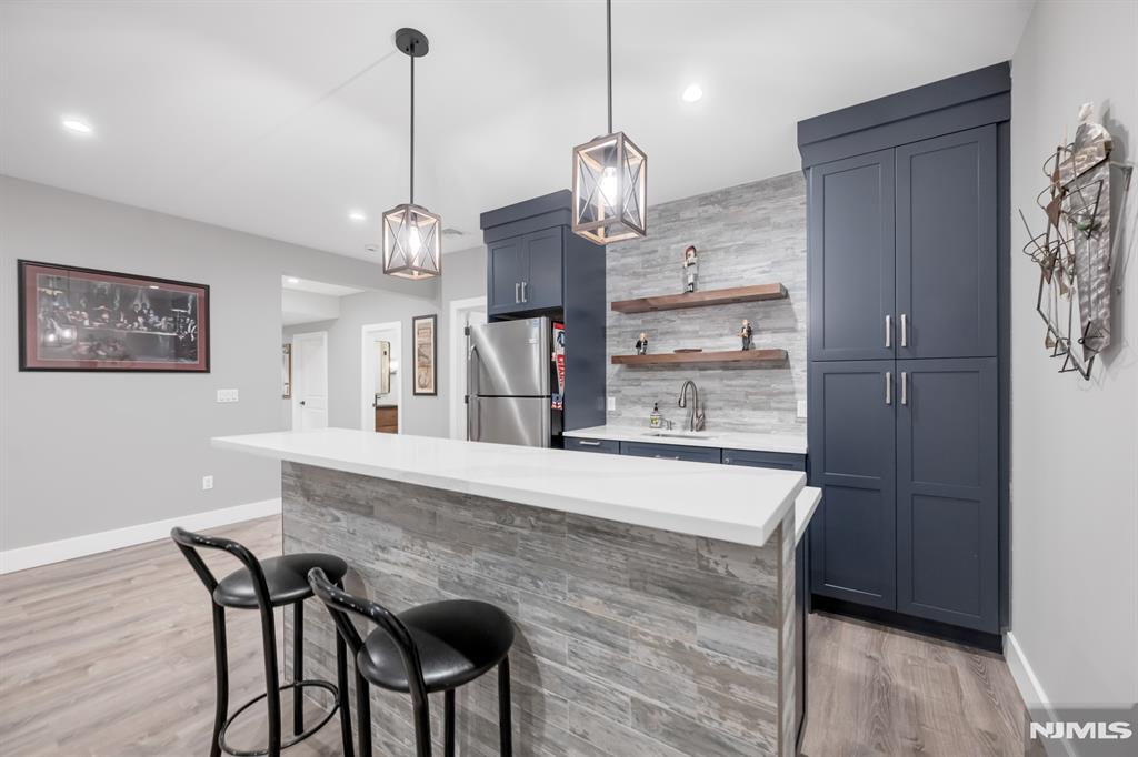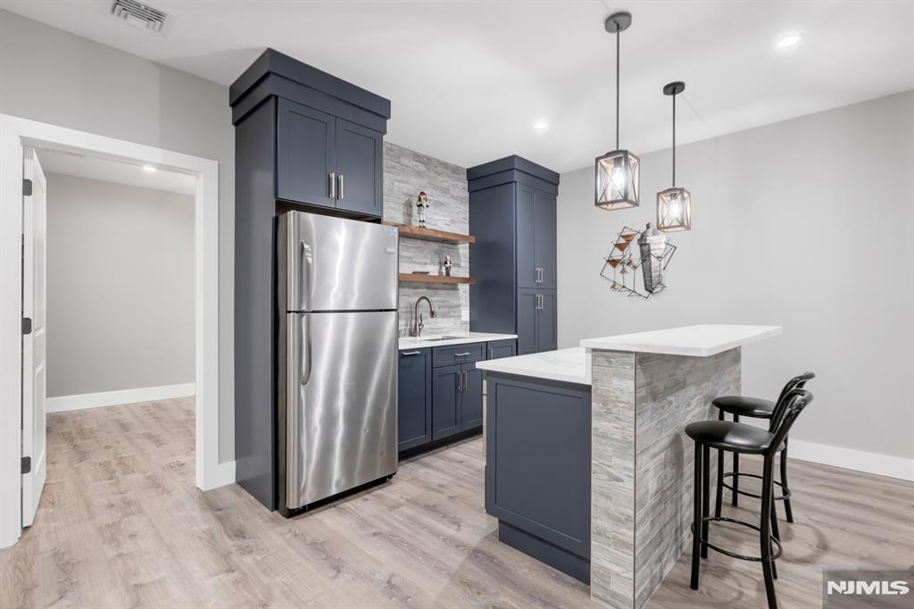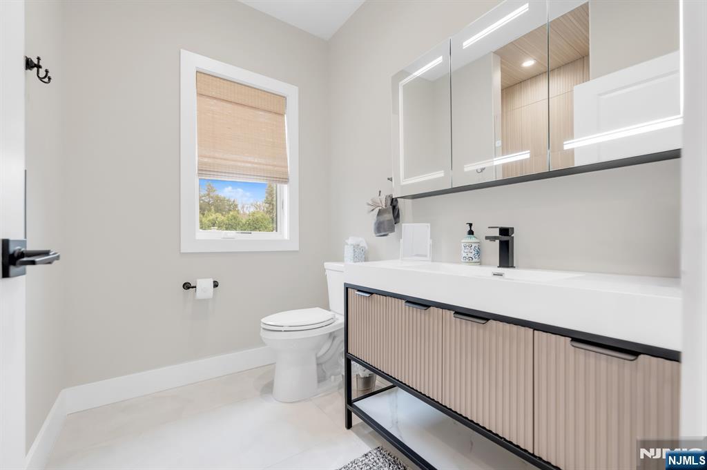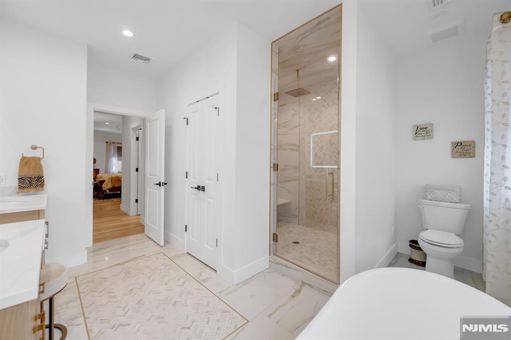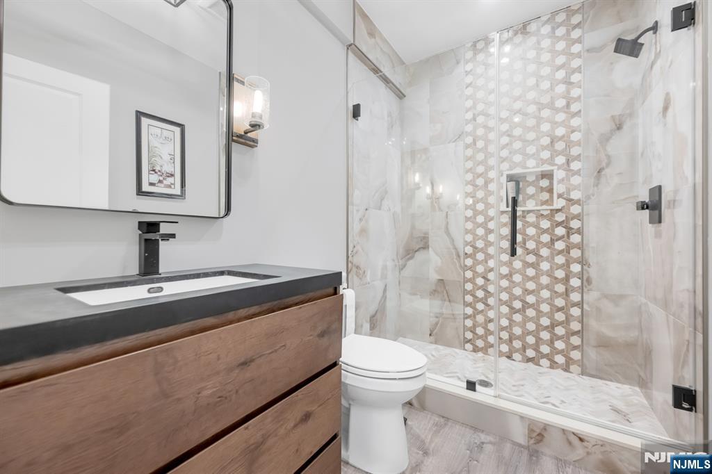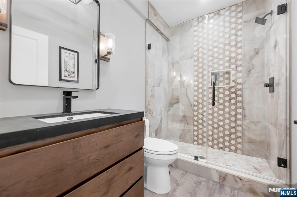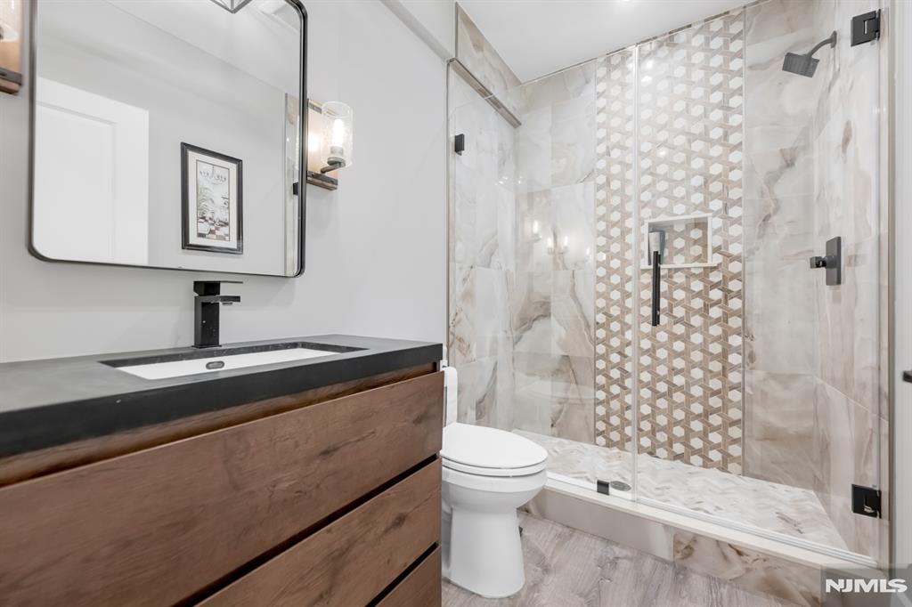 Stunning, brand new construction home built in 2022 in ultra-desirable Paramus! This exceptional modern home offers 6 bedrooms and 5 full bathrooms with a thoughtfully designed layout and luxury finishes. A dramatic two-story foyer welcomes you, flanked by formal LR and DR. Spectacular chefaEUR(tm)s kitchen features St. Martin cabinetry, a massive center island, professional grade appliances including a 48aEUR Wolf dual fuel range, Sub-Zero refrigerator and freezer, Cove dishwasher & butleraEUR(tm)s pantry. The kitchen flows seamlessly into the impressive two-story great room, creating the perfect open-concept space for everyday living and entertaining. Main level also offers a 1st floor bedroom and full bathroom, plus custom mudroom and pantry. Beautiful molding and trim throughout. Upstairs features 4 spacious en-suite bedrooms, including the lux primary suite with 2 WICs and a spa-like bath with radiant heated floors. The finished basement provides incredible space with a large rec room, bar w. micro & fridge, plus bedroom and full bath Step outside to the expansive, fully fenced backyard with paver patio & outdoor kitchen with grill, sink, and fridge. Whole house generator, central vac, smart home features, security cameras, sprinkler system, 3-zone heating and cooling, and so much more. Incredible opportunity to own a beautifully finished and upgraded new construction home only a few years young, close to top rated schools, shopping, dining, and major highways.