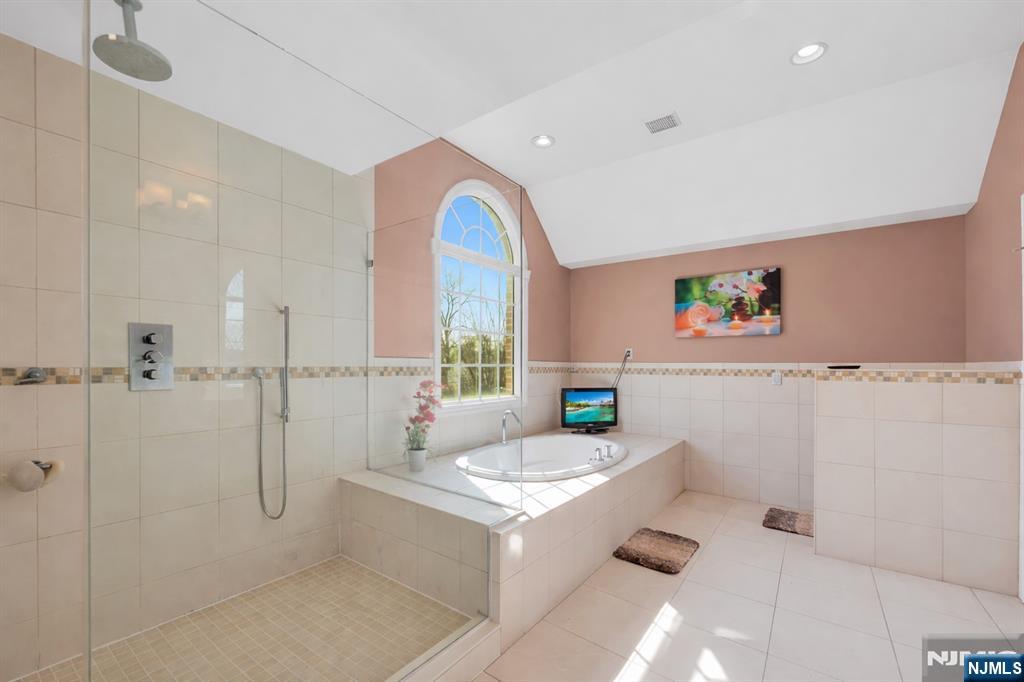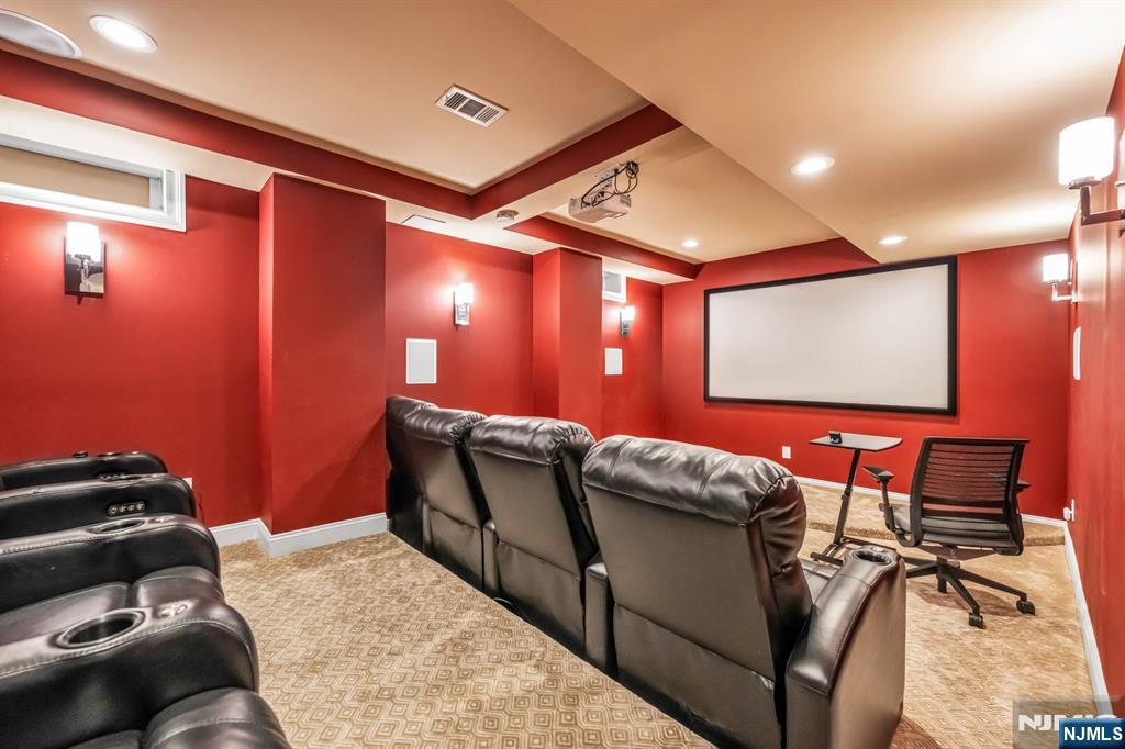 Stunning & grand center hall colonial with 4 bedrooms & 4.5 bathrooms. It features a 3 car garage and offers an extremely spacious and functional floor plan. The fully finished, amenity-packed basement was finished only 8 years ago and features two bonus rooms with closets(One is currently used as a gym). The main level welcomes you with a dramatic two-story entry foyer, flanked by formal living and dining rooms. A wet bar with beverage center and sink seamlessly connects the dining room to the kitchen, ideal for entertaining. The spacious kitchen features granite countertops, a breakfast nook, and opens to the expansive great room with vaulted ceilings and a gas fireplace. Upstairs, all bedrooms are generously sized with ample closet space. The primary suite is massive and offers two walk-in closets and a spa-like bath with a jacuzzi tub and oversized shower. A junior suite includes its own en-suite bathroom, while two additional bedrooms share a full hallway bath. A large laundry room completes the second level. Basement offers exceptional additional living space, including a large recreation room, bar, movie theater, gym, and a bonus room. Situated on a great property with a large deck and a flat, grassy backyard, this home offers both space and functionality. Ideally situated on a quiet cul-de-sac, walking distance to schools. Lot size is very large, approximately 12,824 sq ft. Paramus is known for top-rated schools, premier shopping, and a vibrant community.