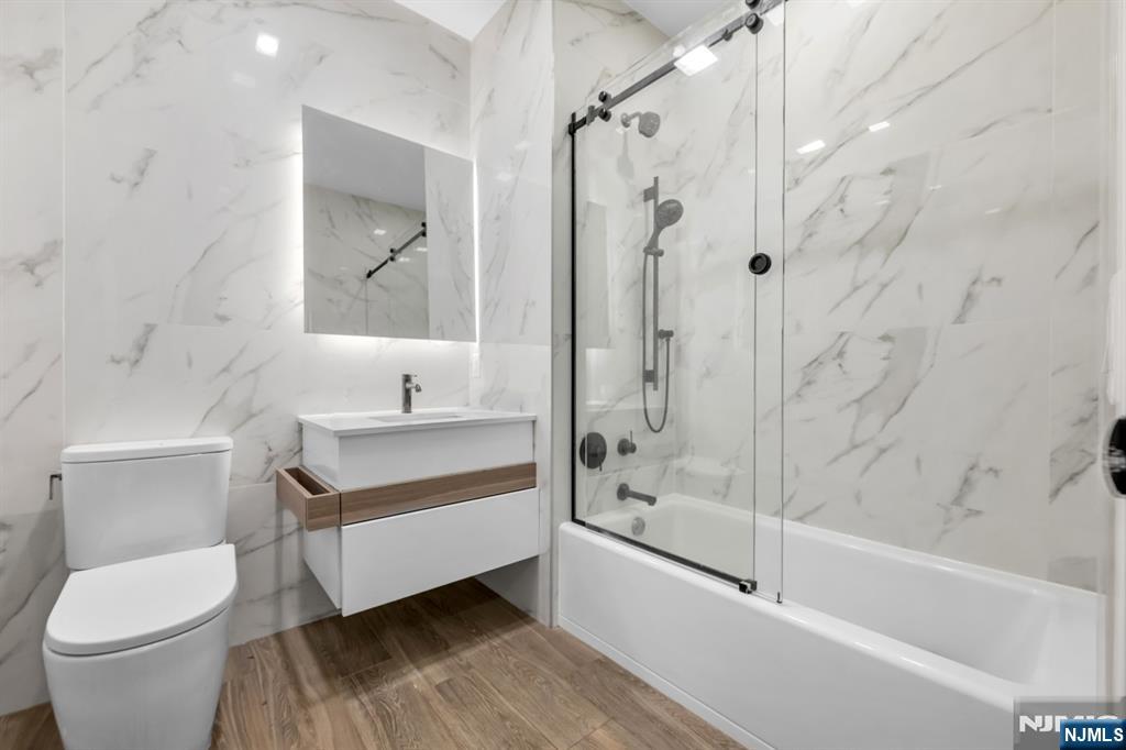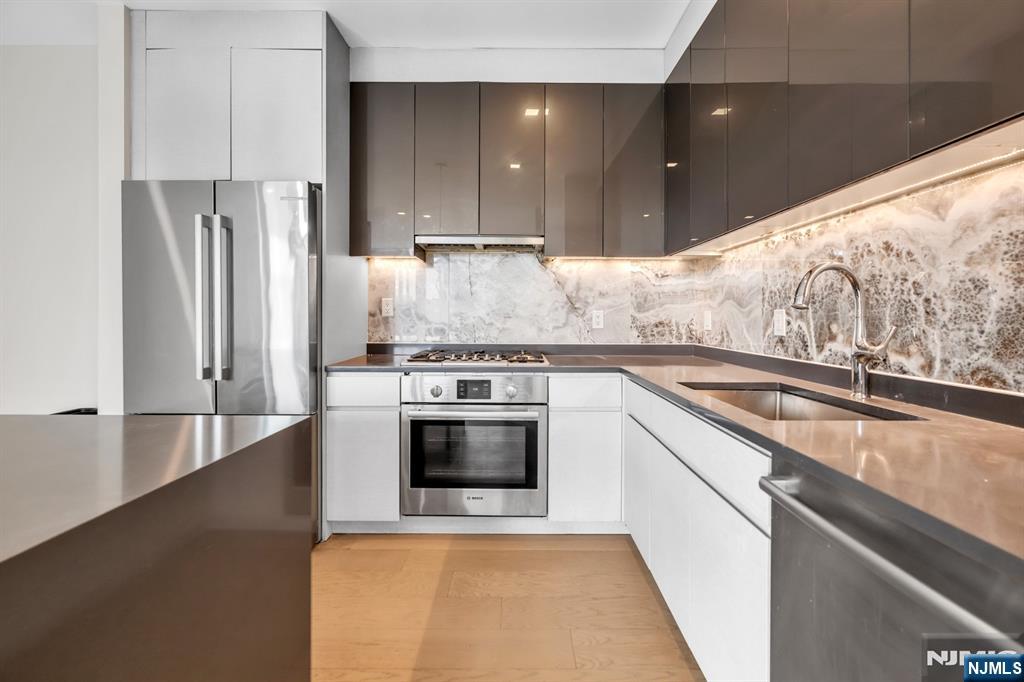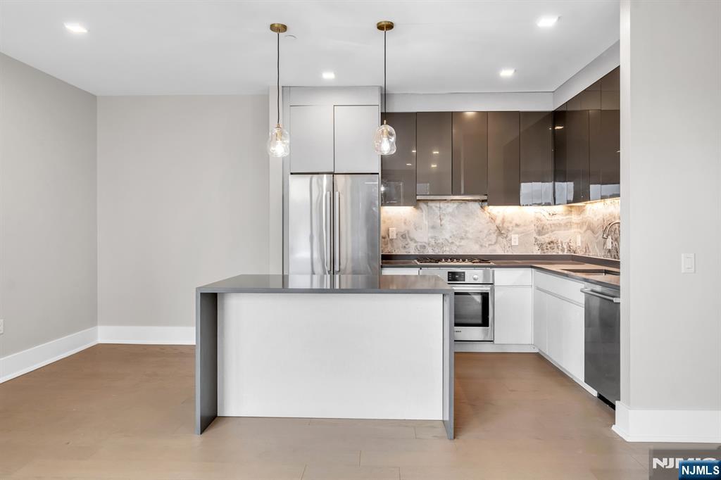 2 bed 2 bath with 1180 sq ft of living space. Available now. Stunning ultra luxury rental on River Road in North Bergen with high end finishes and top tier amenities. Enjoy a beautiful pool and deck with fire pits, grills, and unobstructed NYC views, plus a doorman, gym, and garage parking. The kitchen features Bosch appliances, European style cabinetry, quartz countertops, and a center island. Bathrooms include porcelain tile, Grohe fixtures, and floating vanities. Hardwood floors throughout, in unit laundry, and private storage available. 1 car garage parking INCLUDED for a limited time! Prime location near ferry and bus to NYC, restaurants, shopping, and Hoboken. Pets may be considered. Credit check and proof of income required.