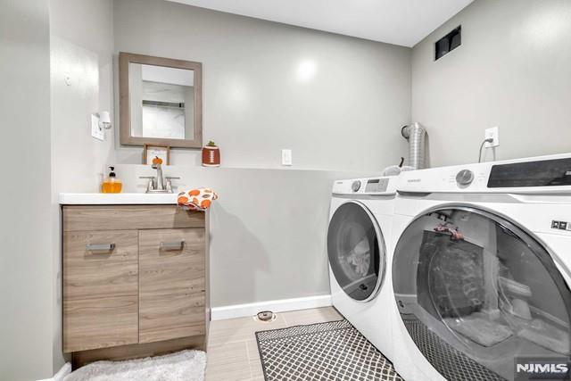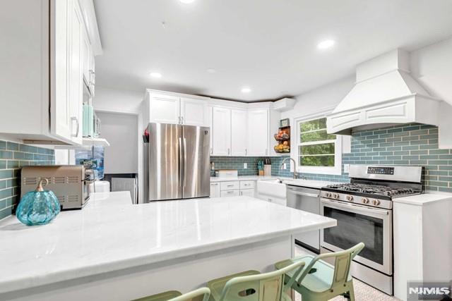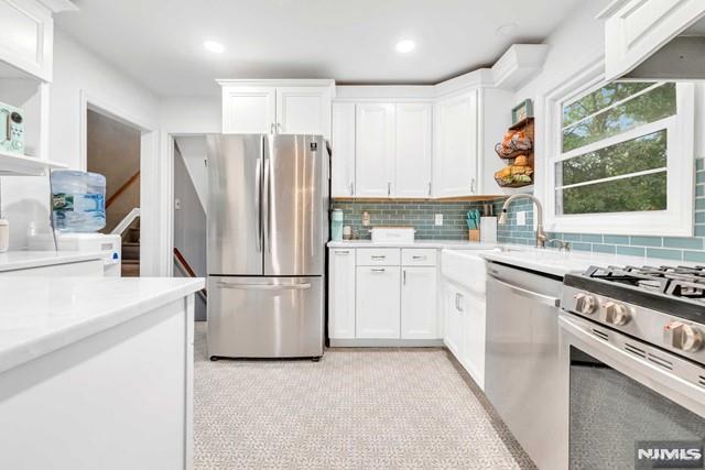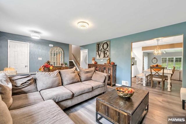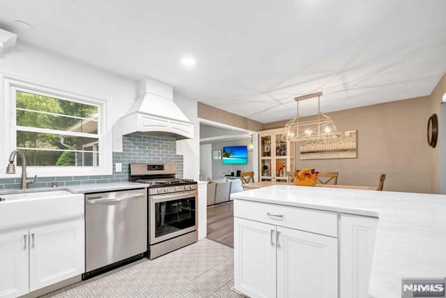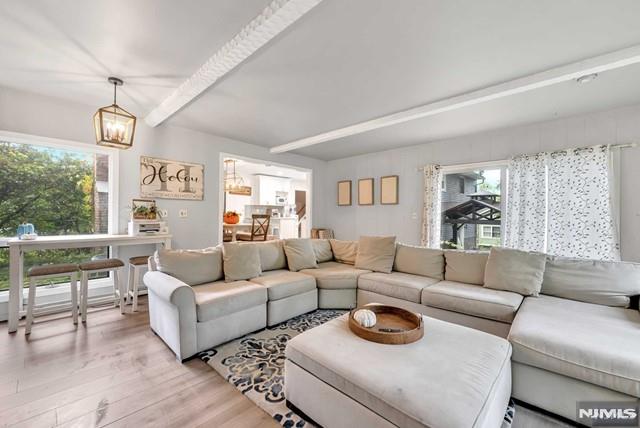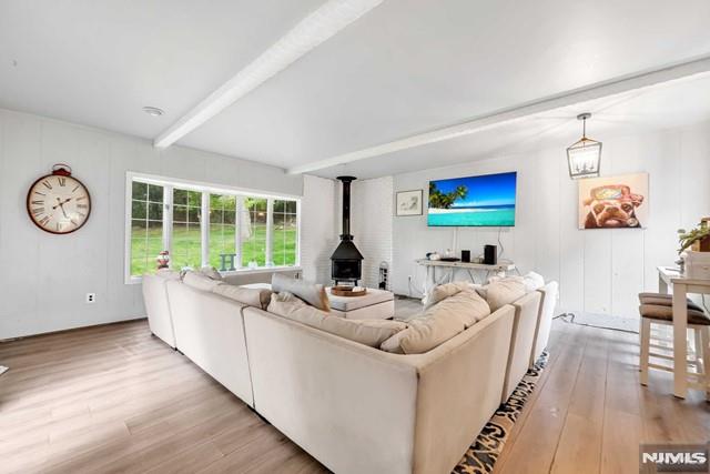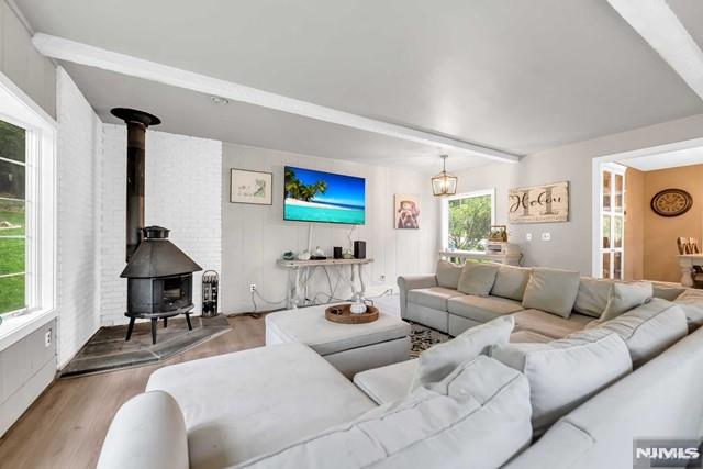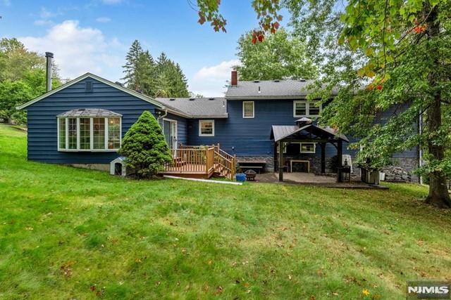 Welcome to this expanded and spacious split-level home on a quiet cul-de-sac in northern Rivervale, set on nearly 2/3 acres. The open and oversized floor plan greets you with a large living room featuring a full-wall brick fireplace, flowing into the DR and a huge family room addition with brick accent walls and sliders leading to a deck & patio with scenic views. Off the dining room is an updated kitchen, perfect for entertaining. Upstairs, you'll find 3 large bedrooms, including a primary with ample closet space and an updated en-suite bath, while the other two share a hallway bath. The lower level offers a cozy den, an updated bath with laundry, and garage access. There's also potential in the partial unfinished basement for customization. This home has been meticulously maintained and is close to top-rated schools, beautiful golf courses, parks, and all the wonderful amenities this sought-after town has to offer. This is the perfect blend of comfort and convenience!